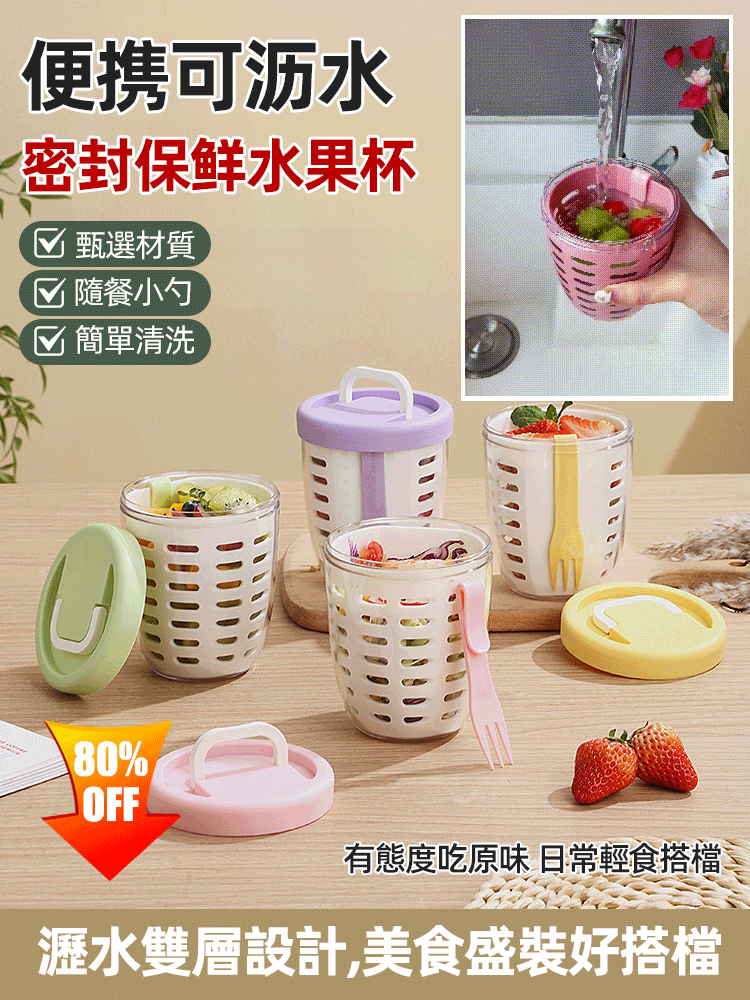 4分鐘前便攜可瀝水密封保鮮水果杯 - 買一送一899